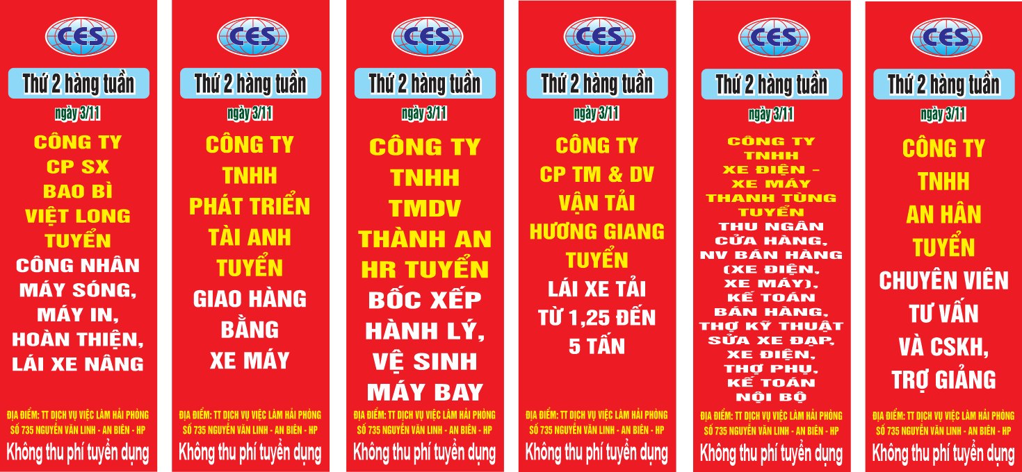 TUYỂN DỤNG LAO ĐỘNG MIỄN PHÍ : PHIÊN GIAO DỊCH VIỆC LÀM ĐỊNH KỲ NGÀY 03/11/2025 Tại 735 Nguyễn Văn Linh- An Biên - Hải Phòng