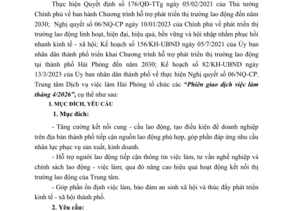 Nhằm kết nối hiệu quả Cung - Cầu lao động, hỗ trợ doanh nghiệp, đơn vị tìm kiếm nguồn nhân lực chất lượng và giúp người lao động tìm được việc làm phù hợp, Trung tâm Dịch vụ việc làm Hải Phòng trân tr