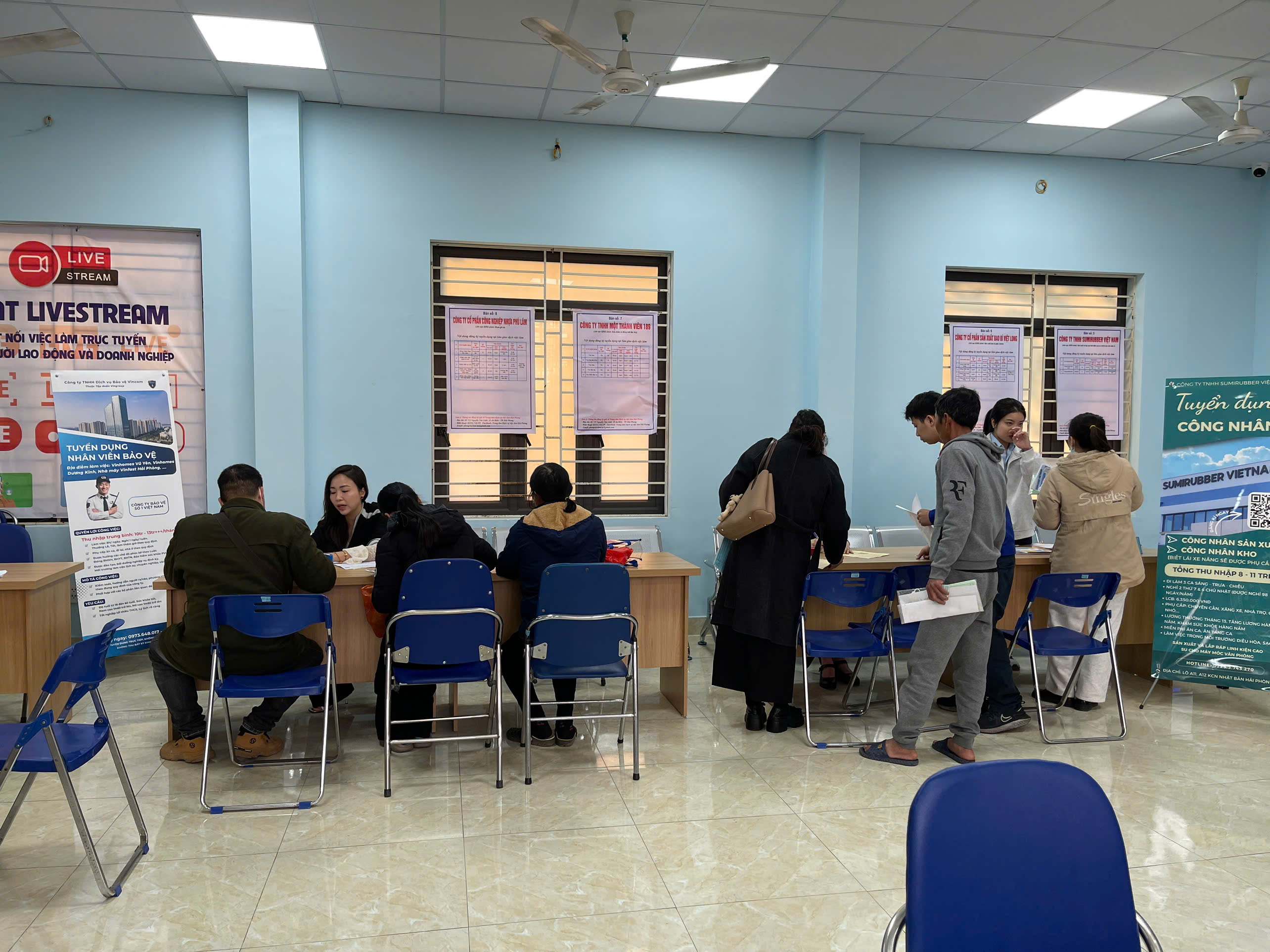 Sáng ngày 19/01/2026, thực hiện chỉ đạo của Sở Nội vụ thành phố Hải Phòng, Trung tâm Dịch vụ việc làm Hải Phòng đã tổ chức Phiên giao dịch việc làm định kỳ với sự tham gia của 10 doanh nghiệp có nhu cầu tuyển dụng lao động trên địa bàn thành phố và một số khu vực lân cận. Phiên giao dịch được triển khai đồng thời theo hai hình thức: tổ chức trực tiếp tại Trung tâm và livestream trên nền tảng Facebook, qua đó mở rộng khả năng tiếp cận thông tin việc làm cho người lao động.
