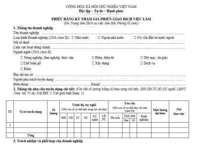 Để thuận tiện cho việc đăng ký thủ tục tham gia các Phiên sàn giao dịch việc làm theo kế hoạch định kỳ. Trung tâm cập nhật mẫu phiếu đăng ký tham gia Phiên sàn giao dịch việc làm năm 2026 Mẫu Phiếu đ