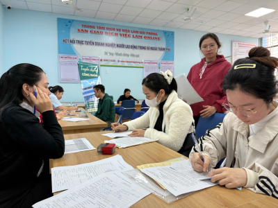 Ngày 15/12/2025. Trung tâm tổ chức Phiên giao dịch việc làm định kỳ tháng 12 năm 2025 thu hút sự tham gia của 07 doanh nghiệp. Trong đó tổng nhu cầu tuyển dụng là 2.900 vị trí, gồm các ngành nghề: ma